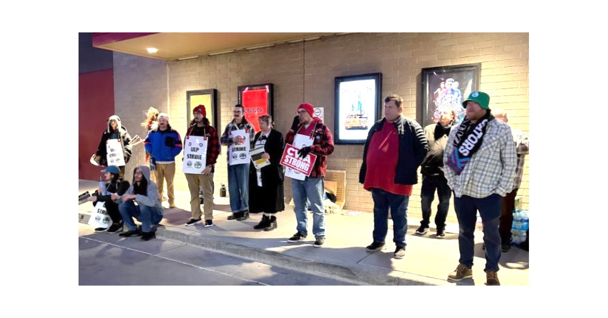 CWA Local 7777 members at Alamo Drafthouse’s Sloans Lake location in Denver, Colo., walked off the job last week for an unfair labor practice strike. Management unilaterally implemented a QR code system for orders that has proven confusing and frustrating for workers and customers alike.